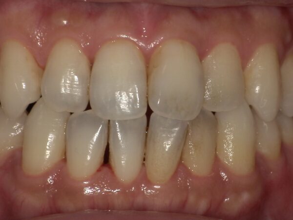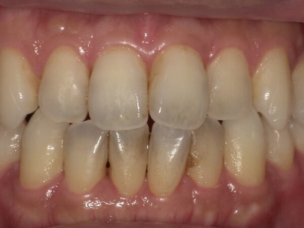 前歯の黄ばみだけ短時間でやってもらってる様子と、