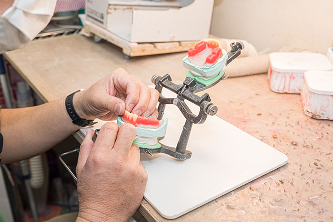 入れ歯ができるまでの作成工程は5段階あり、その後に調整が始まります。どんなプロセスで入れ歯を作るのか?ご紹介します。