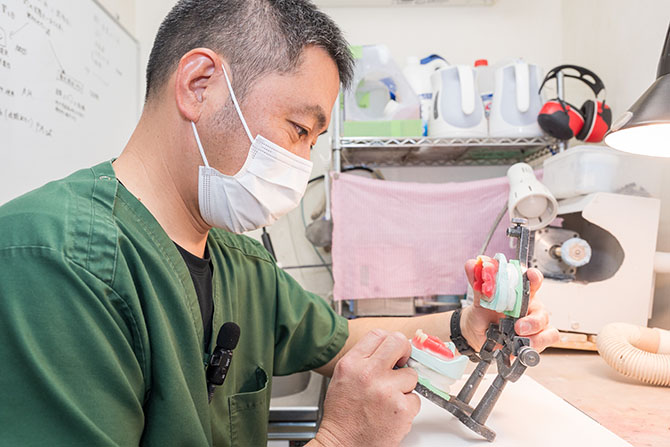 春日部のラビット歯科には、院内に入れ歯の作成だけでなく調整まで出来る「歯科技工士」が常駐しております。